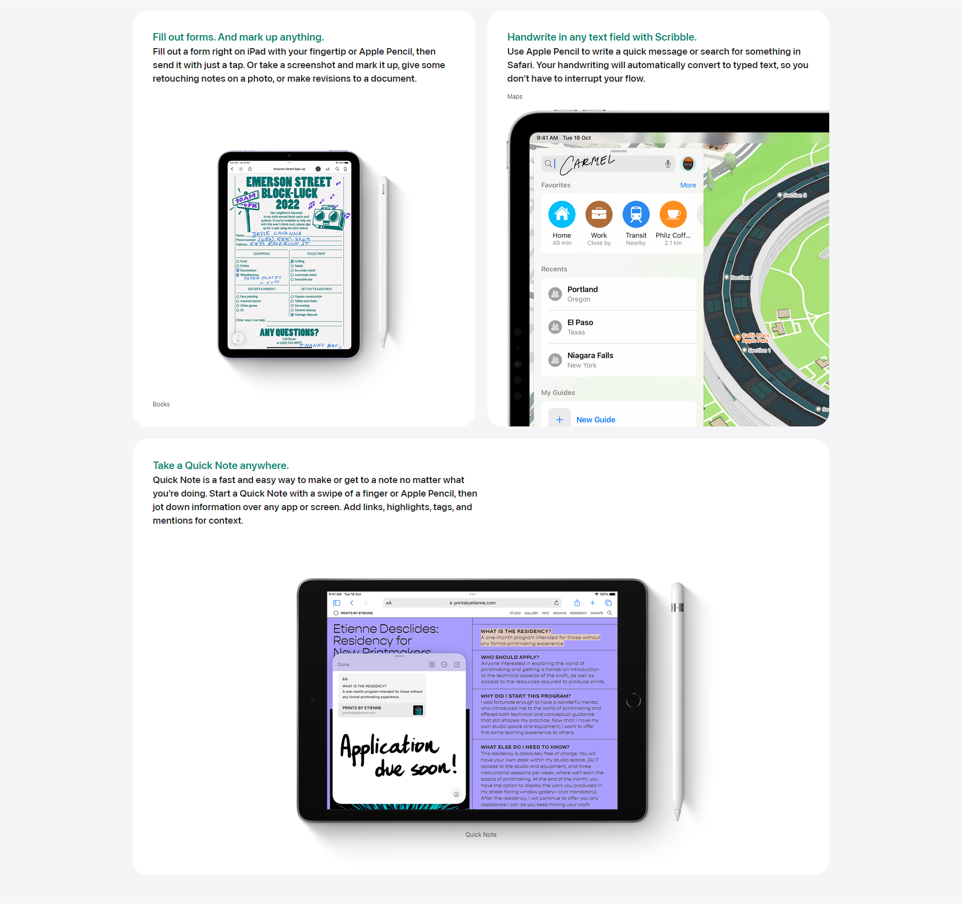 Whether you’re taking class notes, keeping a journal, or brainstorming a solution, iPad is always ready to capture your brightest ideas. Then you can easily share them, build on them, and bring them to life.4