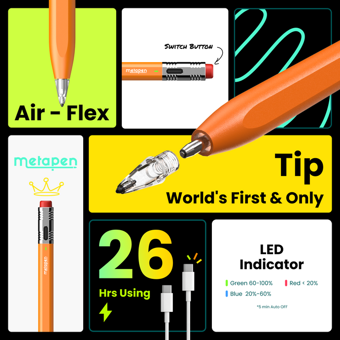 Inspired by the classic pencil, Air 8 Pro X pairs a lightweight, timeless design with the world’s first Air-Flex tip for a soft, paper-like writing feel. With USB-C fast charging and up to 26 hours of use, it’s built for comfort, precision, and all-day creativity.